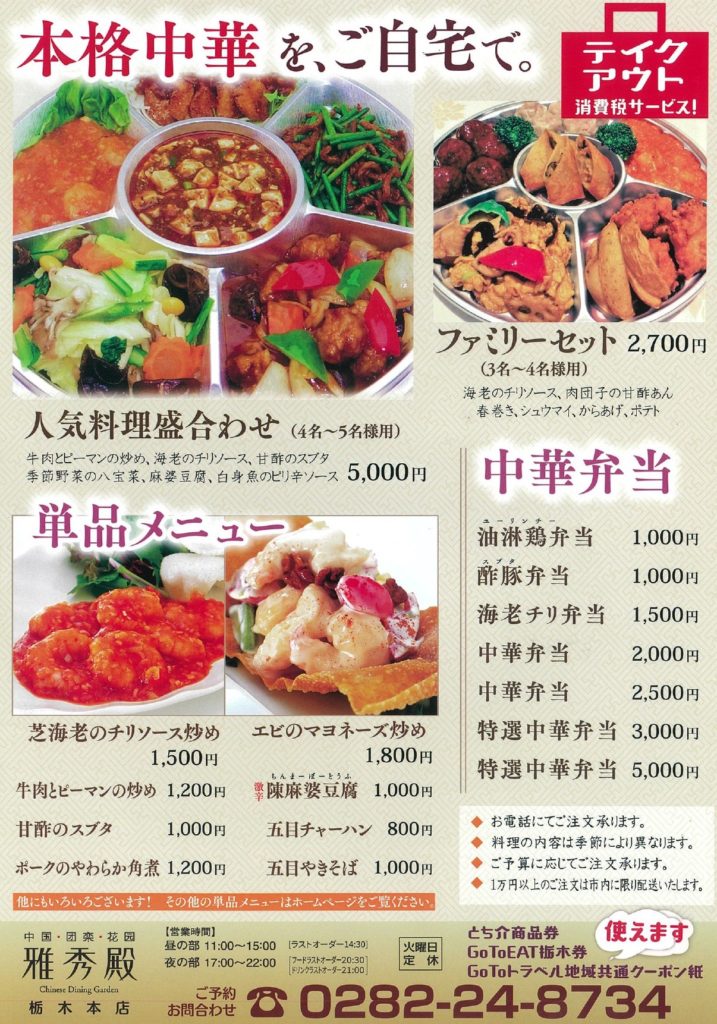 タグ: ポスティング, 反響, 広告, チラシ配り, A4, 宣伝, 効果, ビラ配り, 全戸配布, 栃木みらいポスティング, 栃木市, 栃木県, 栃木県 ポスティング, 栃木市 ポスティング, 飲食店, テイクアウト ポスティング, チラシ印刷, 中華料理店 集客, 0282-24-8734, 雅秀殿, ポスティング 印刷, ポスティング 印刷 栃木県, ポスティング業者 栃木県, ポスティング業者, チラシ配り 栃木県, ポスティング 単価, チラシデザイン業者, ポスティング 会社, チラシ配布業者, 効果のある広告, ポスティング 印刷 栃木市, ポスティング業者 栃木市, チラシ配り 栃木市, チラシ印刷 栃木市, ポスティング 単価 栃木市, チラシ配布業者 栃木市, チラシデザイン業者 栃木市, テイクアウトメニューのご案内, ポスティング 栃木県, チラシ印刷 栃木県, ポスティング 会社 栃木県, チラシ配布業者 栃木県, チラシデザイン業者 栃木県